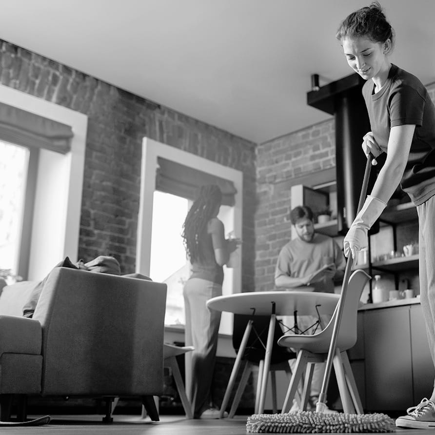 Ne organizăm folosind un proces clar: luăm fiecare suprafață la rând, organizăm spațiul și ne asigurăm că totul este pus în ordine, nu doar dezinfectat. Știm că o casă aglomerată obosește mintea, așa că intervenim metodic pentru a-ți reda sentimentul de control asupra căminului.